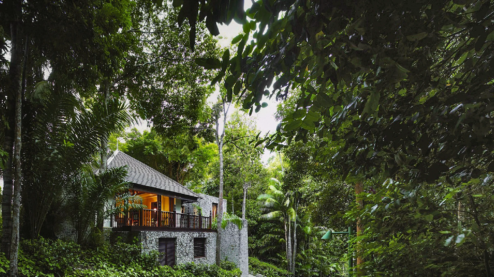 Poised on the eastern curve of a hilltop, this Estate unfolds with 270-degree views spanning emerald rainforest to the shimmering coast. A vast wooden deck surveys the Straits of Malacca, while three bedrooms immerse in the panorama.